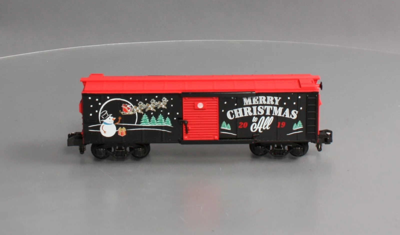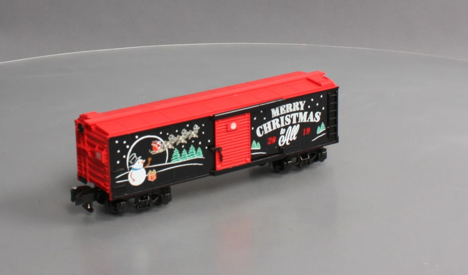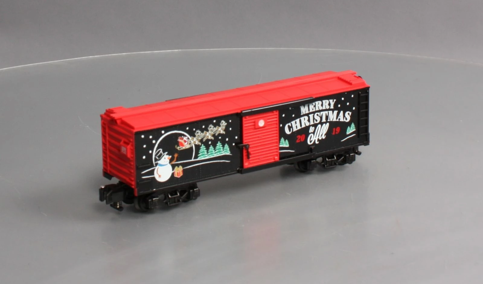 This is a Lionel 1919320 S 2019 Christmas Boxcar. Features: Die-cast metal trucks, Operating couplers, Metal frame, Opening doors.