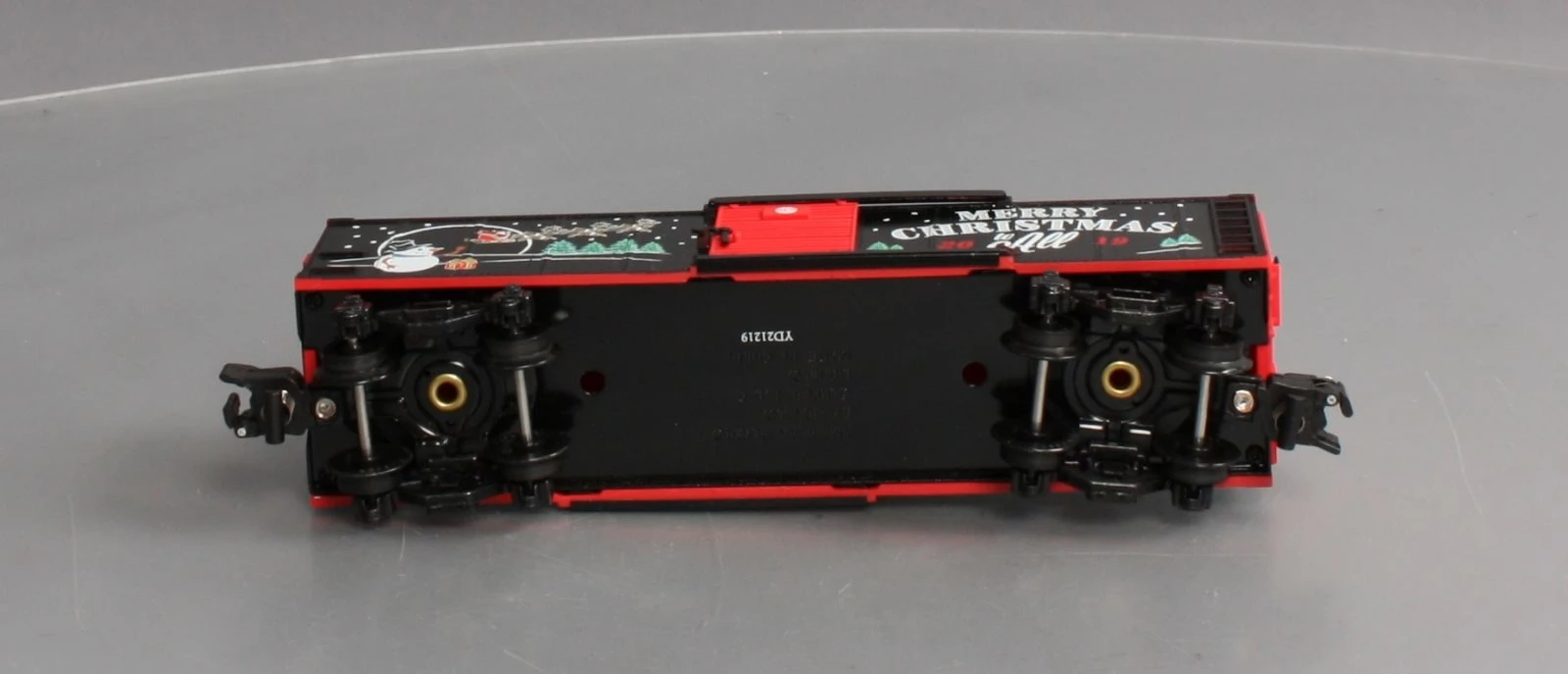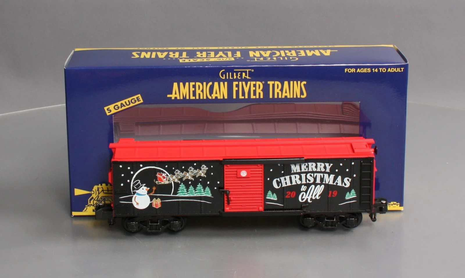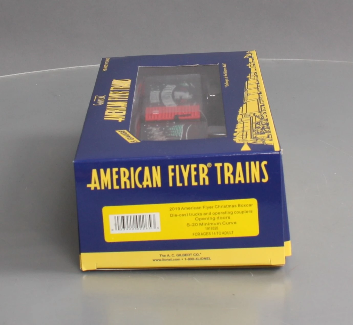 This is a Lionel 1919320 S 2019 Christmas Boxcar. Features: Die-cast metal trucks, Operating couplers, Metal frame, Opening doors.