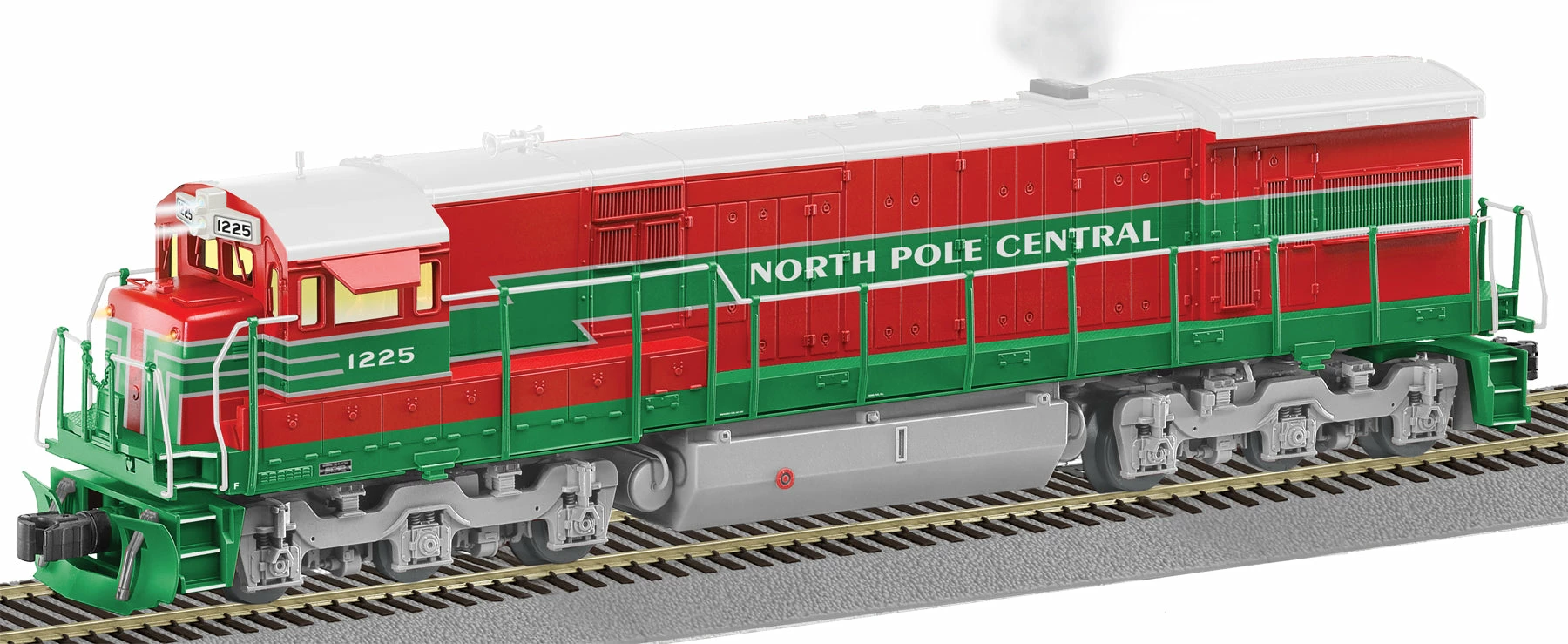 This is an AF 6-48195 S Scale Christmas U33C Diesel/Legacy. Features: LEGACY Control System equipped—able to run in LEGACY Control mode, in TrainMaster Command Control Mode, or in Conventional mode with a standard transformer LEGACY RailSounds sound system featuring:-CrewTalk dialog and TowerCom announcements, each with different scenarios depending on whether the locomotive is in motion or stoppedEight diesel RPM levels-LEGACY Real-Time Quilling Horn control with instant response for realistic signature quilling and correctly timed warning signals -Single hit or continuous mechanical bell soundsIndependently adjustable volume control Two Powerful maintenance-free motors with momentum flywheel Front and rear Electro-Couplers Operating marker lights on front and rear Illuminated cab Interior Die-cast metal trucks, pilots and fuel tank Metal frame Separately applied metal details Fan-driven smoke unit Detailed cab interior Cab window glass Engineer figure AF Speed Control lets your locomotive operate smoothly and consistently over grades and through curves Operating headlight Illuminated number boards Traction tires