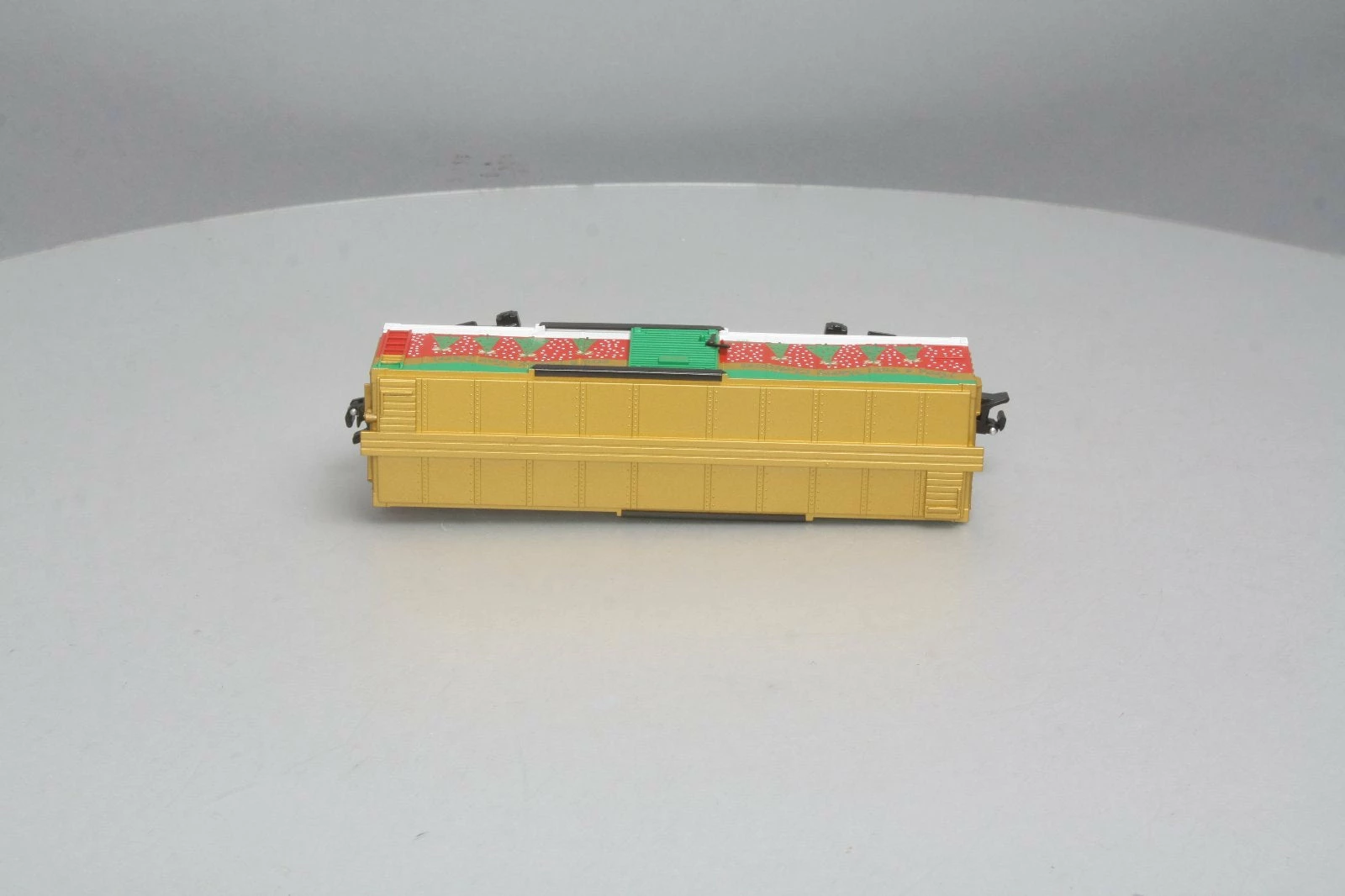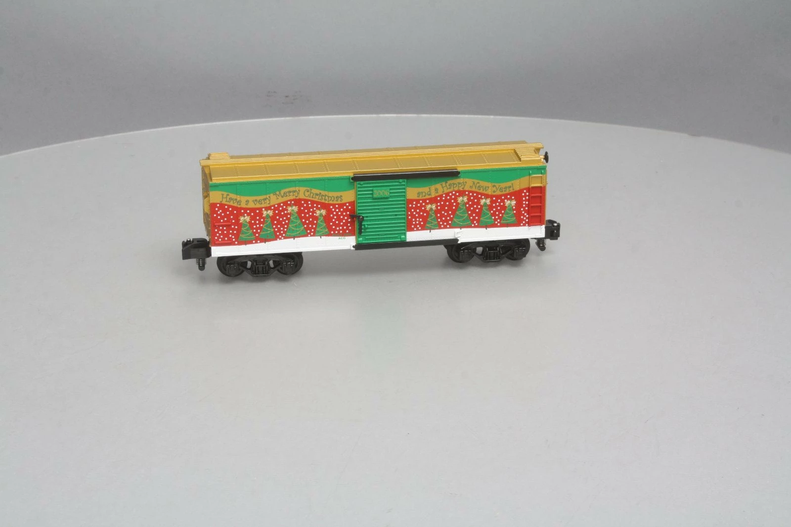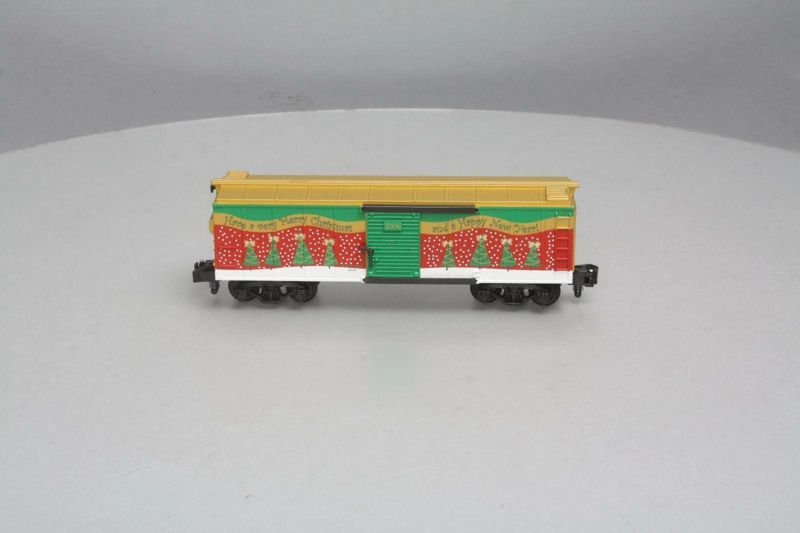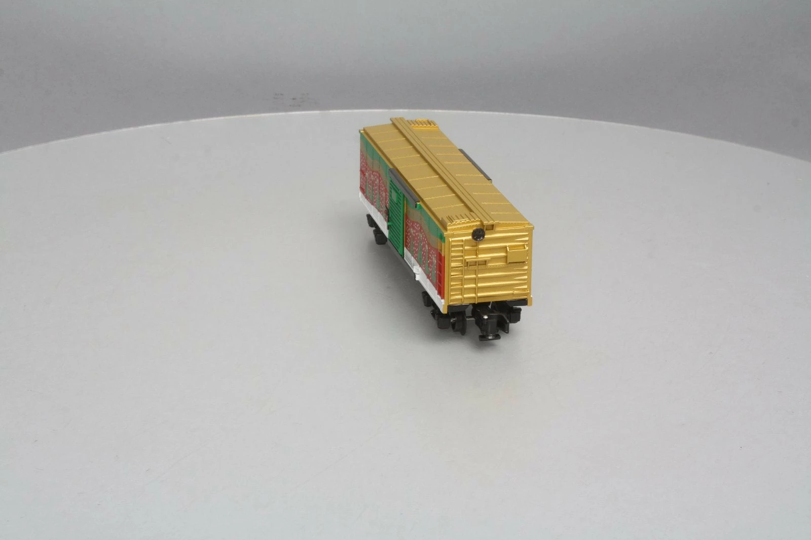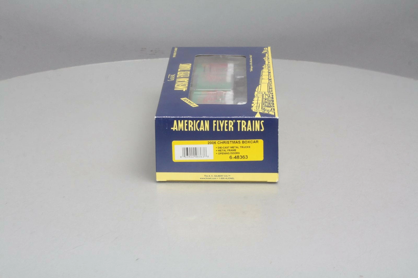 Here is an American Flyer 6-48363 S Gauge 2006 Christmas Boxcar. This car features sliding side doors with latches, die-cast metal trucks, operating knuckle couplers, plastic wheels, and metal axles.