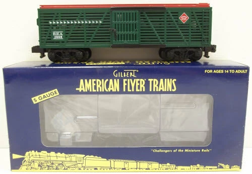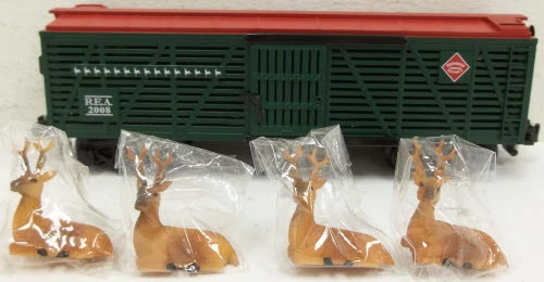 This is a Lionel 6-48375 American Flyer Stock Car with Reindeer. This stock car moves Santa’s special reindeer from the North Pole to his workshop. Soon they will be packed up and ready for the long flight on Christmas Eve. Features include die-cast metal truck, a metal frame, opening doors, includes four reindeer figures inside stock car and it measures 8 3/8 inches.