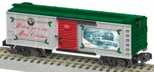This is an AF 6-48833 S Scale 2013 Christmas Boxcar. Features: Die-cast metal trucks and operating couplers Metal frame Opening doors Gauge: American Flyer/S Gauge Dimensions: Length: 8 3/8” Minimum Curve: S-36