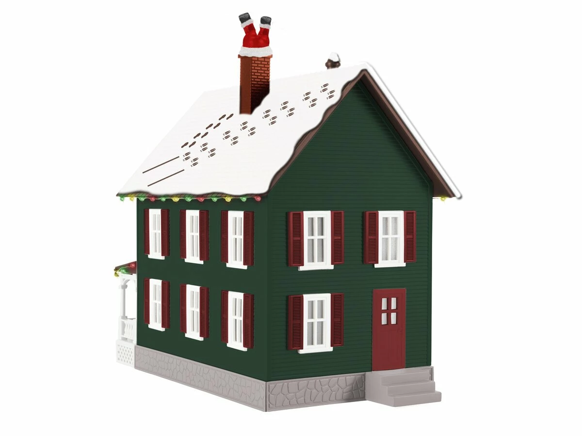 This is a Lionel 2229290 O Plug-Expand-Play Up on the Rooftop Christmas House. Features: LED Lighted Interior. Santa Figure On Chimney. LED String Lighting on Roof.