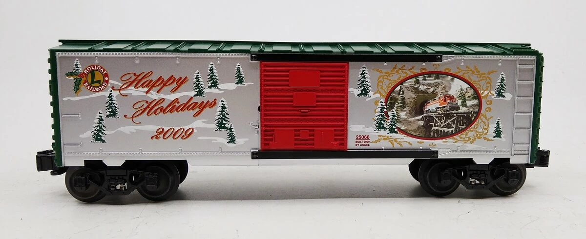 This is a Lionel 6-25066 O Gauge 2009 Christmas Boxcar from the Lionel 2009 Christmas Catalog. Collect the latest additions to the Lionel tradition. It features Die-cast metal sprung trucks and operating couplers Metal frame Opening doors Gauge: Traditional O Gauge Dimensions: Length: 10 ½ Minimum Curve: O-27