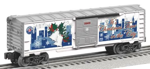 This is a Lionel 6-36896 Christmas Music Boxcar from the Lionel 2009 Christmas Catalog. Add musical joy to your layout! With the flip of a switch, you can listen to 12 of your favorite Christmas carols on this elegantly decorated boxcar. Features Die-cast metal sprung trucks and operating couplers Plays 12 Christmas carols powered by a nine-volt battery (not included) ON/OFF switch Gauge: Traditional O Gauge Dimensions: Length: 10 ½ Minimum Curve: O-27