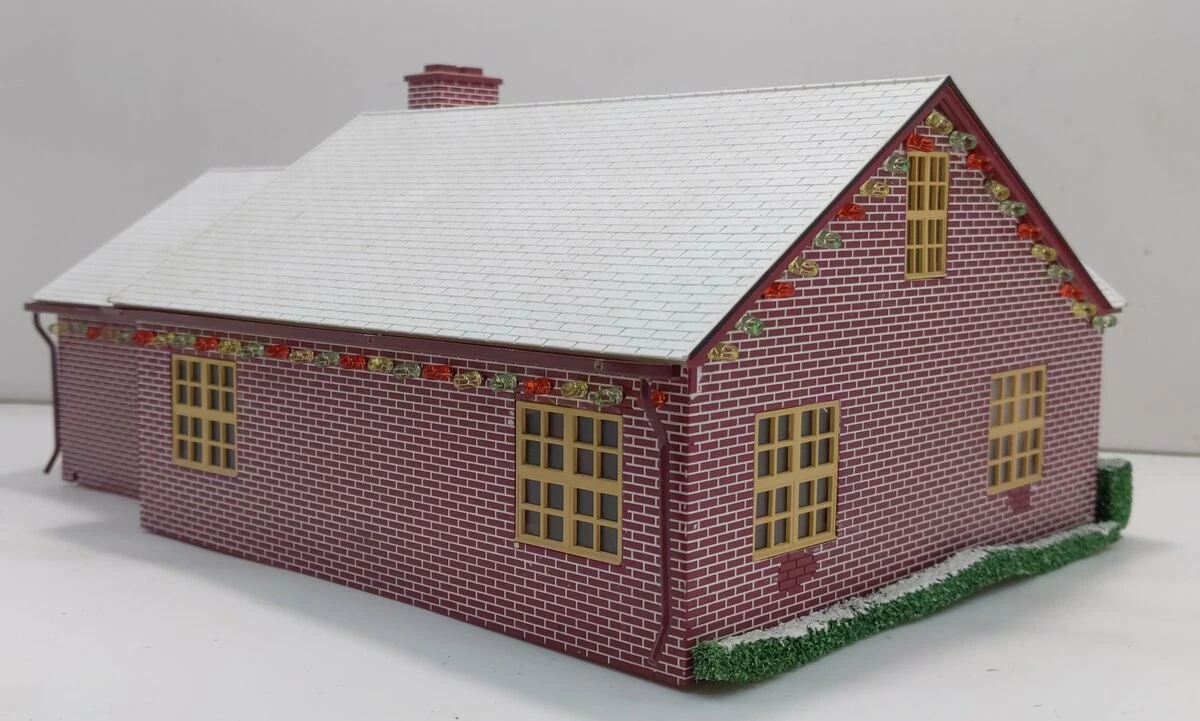 This item has been graded per TCA standards C-6: Very Good. This item has some dirt and dust spotting. The overall appearance of this item may be improved with a gentle and thorough cleaning. There are light scratches and markings along the body. Some of the window décor has broken off and is included. The hedge décor around the house is loose. Some of the lights on the house house failed to light up when tested. The instruction manual is not included. The original box is not included. Overall condition is Very Good.
