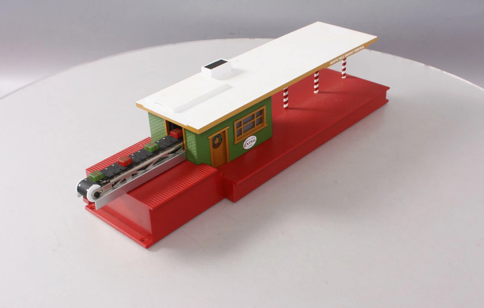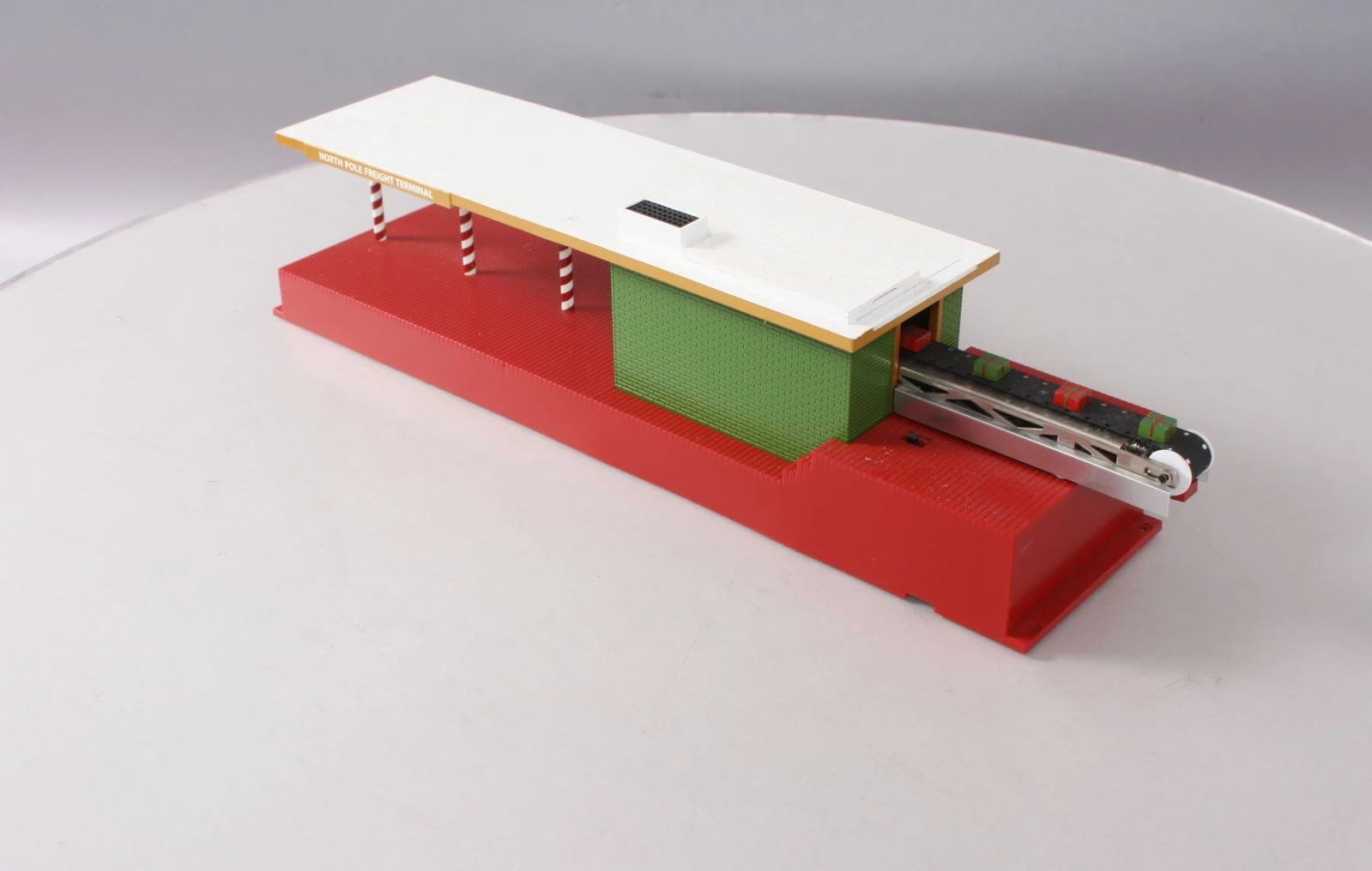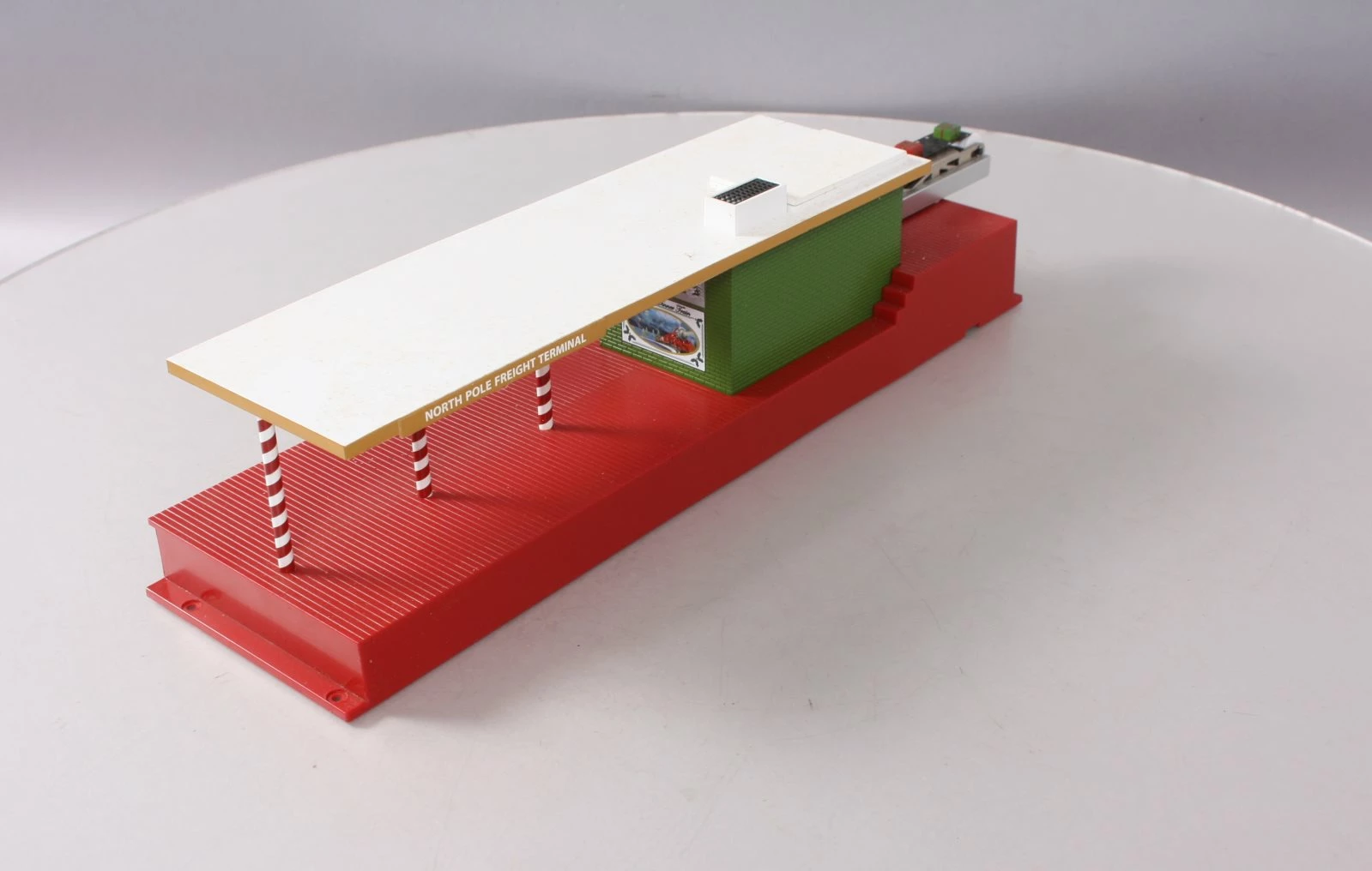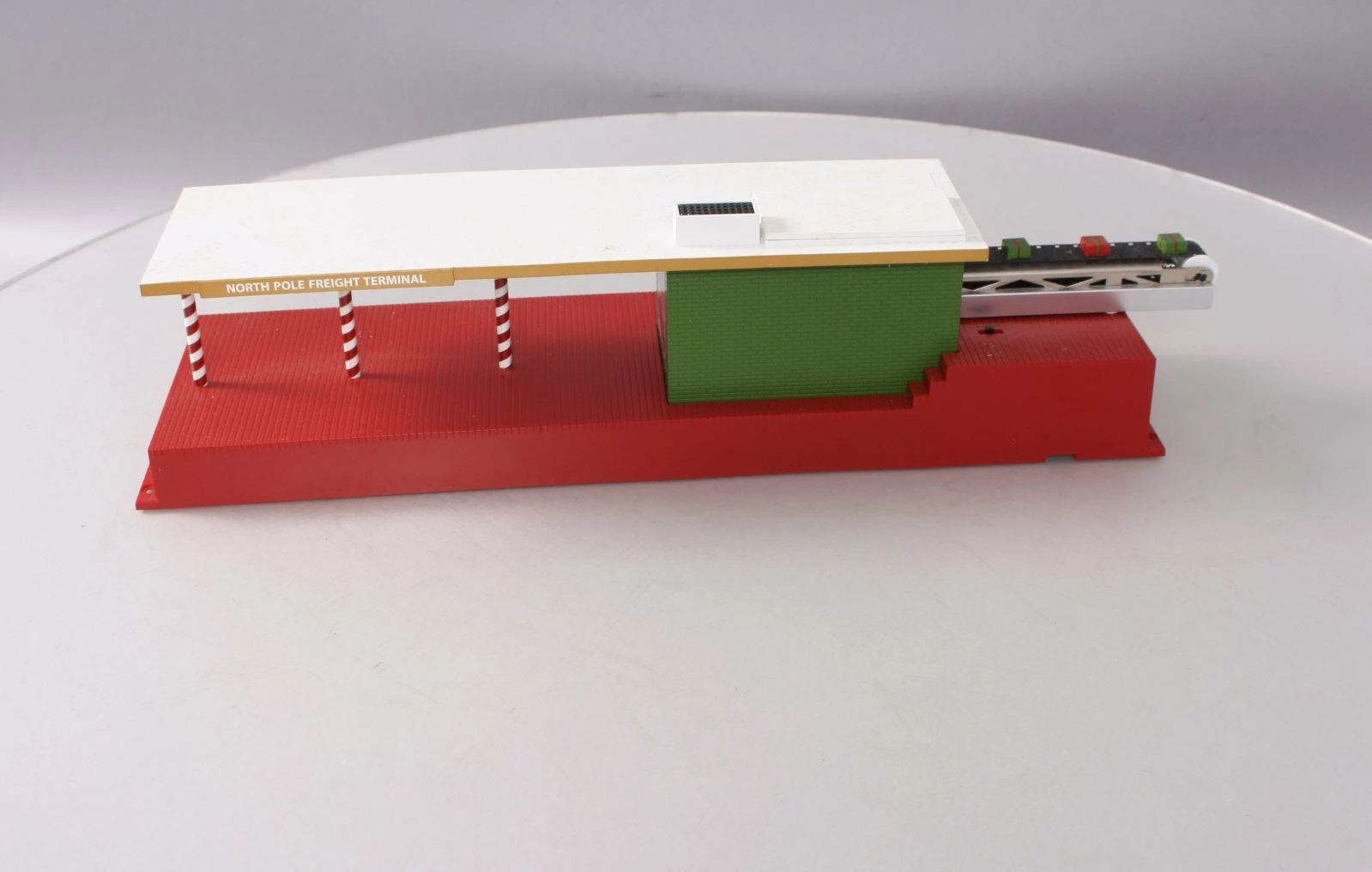 This is Lionel 6-37965 O Operating Freight Terminal, Christmas. Based on the recently released Archive Terminal, the all new Lionel Christmas Freight Terminal has plenty of action for your Holiday Trains. Those presents have to get shipped on time or disappointment might result. This wonderful accessory includes colorful packages on the conveyor belt that appear to be loaded into your waiting rail cars.