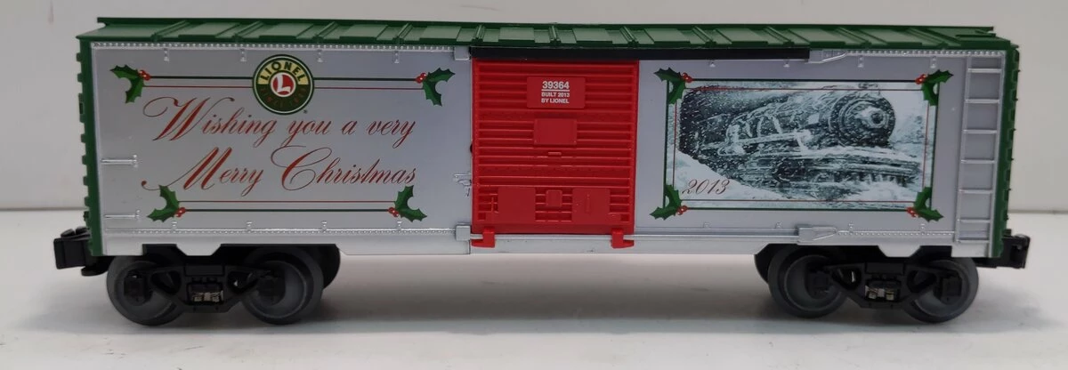 Here is a Lionel 6-39364 2013 Christmas Boxcar. This car features sliding doors, die-cast metal sprung trucks, die-cast metal operating knuckle couplers, and metal wheels and axles.