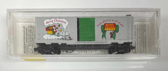 Here is a Micro-Trains 02000356 N Scale Micro-Trains Line “Merry Christmas” Box Car #1996. This car features plastic trucks, knuckle couplers, plastic wheels and axles.