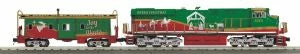This is an MTH 30-20758-1 O Christmas ES44AC Diesel & Caboose w/Proto Sound 3.0. Locomotive Features: Intricately Detailed Durable ABS Body , Die-Cast Truck Sides, Pilots and Fuel Tank , Metal Chassis , Metal Handrails and Horn , (2) Handpainted Engineer Cab Figures , Authentic Paint Scheme , Metal Wheels, Axles and Gears , (2) Remote Controlled Proto-Couplers , Prototypical Rule 17 Lighting , Directionally Controlled Constant voltage LED Headlights , Lighted LED Cab Interior Light , Illuminated LED Number Boards , Operating LED Ditch Lights , Operating LED Charging Lights , (2) Precision Flywheel-Equipped Motors , Operating ProtoSmoke Diesel Exhaust , Onboard DCC Receiver , Locomotive Speed Control In Scale MPH Increments , Near Scale Sizing , Locomotive Measures: 17 x 2 1/2 x 3 3/4 , Operates On O-31 Curves , Caboose Features: Intricately Detailed Durable ABS Body , Stamped Metal Floors , Metal Wheels and Axles , Die-Cast 4-Wheel Trucks , Fast-Angle Wheel Sets , Needle-Point Axles , Operating Metal Latch Couplers , Caboose Interiors With Overhead Lighting , Decorative Brake Wheels , Separate Metal Handrails , Near-Scale Proportions , Locomotive Measures: 17 x 2 10 1/4 x 2 1/2 x 4 1/4 , Operates On O-27 Curves