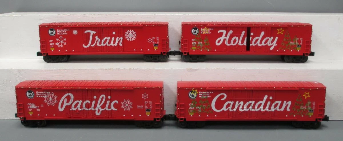 Here is an MTH 30-7087 O Candian Pacific Christmas 50′ Boxcar Set w/ LED Lights. This car features die-cast metal sprung trucks, operating knuckle couplers, metal wheels and axles.