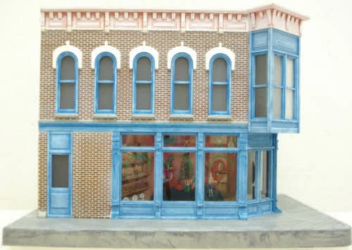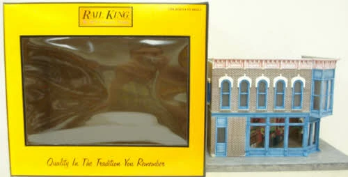 Here is a MTH 30-90104 Christmas Store Corner Building with Blinking Sign. This building features an intracately detailed ABS construction, is fully assembled, and has been fully painted, with a lighted interior. The Unit Measures are 9 7/8“ x 7 7/16“ x 7 1/16“.