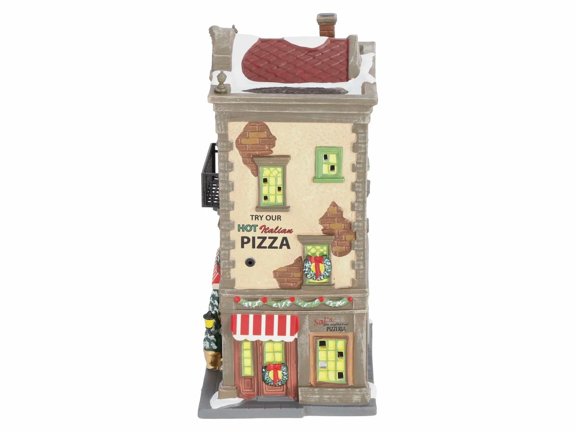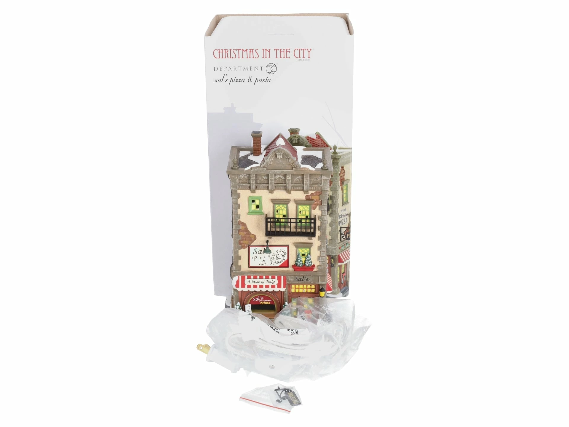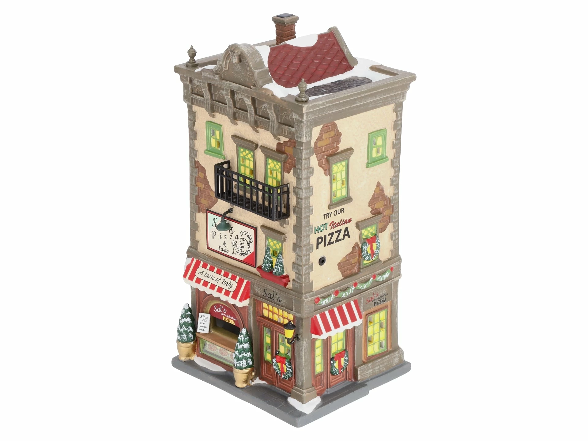 Here is a Department 56 Christmas in the City Sal’s Pizza & Pasta Village Lit Building. With this illuminated village you can bring the excitement of the holiday season into your home. Christmas in the City captures the yuletide hustle and bustle of celebrating the holidays when you live and work downtown.